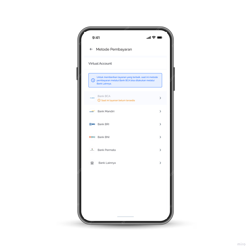 Masuk ke m-banking, lalu cari pembayaran menggunakan Virtual Account.