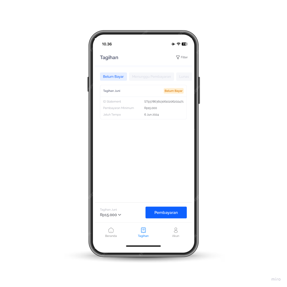 Setelah berhasil masuk, klik 'Tagihan' di aplikasi untuk melihat daftar tagihan yang belum dibayar.
